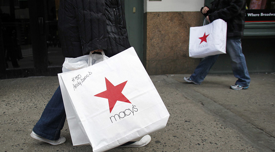 Shoppers carry shopping bags, after buying goods at Macy’s flagship department store in Herald Square in New York March 2, 2010. Record snow along the U.S. East Coast and other regions likely muted retail sales in February, limiting increases in what was expected to be an easy month for retailers to show big gains over last year. REUTERS/Natalie Behring (UNITED STATES – Tags: BUSINESS) – RTR2B57J